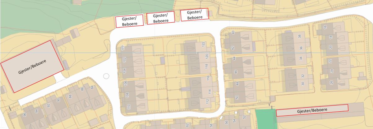 Det oppfordres til at alle som har garasjeplass om å bruke denne, sånn at det er ledige plasser for gjester å parkere.